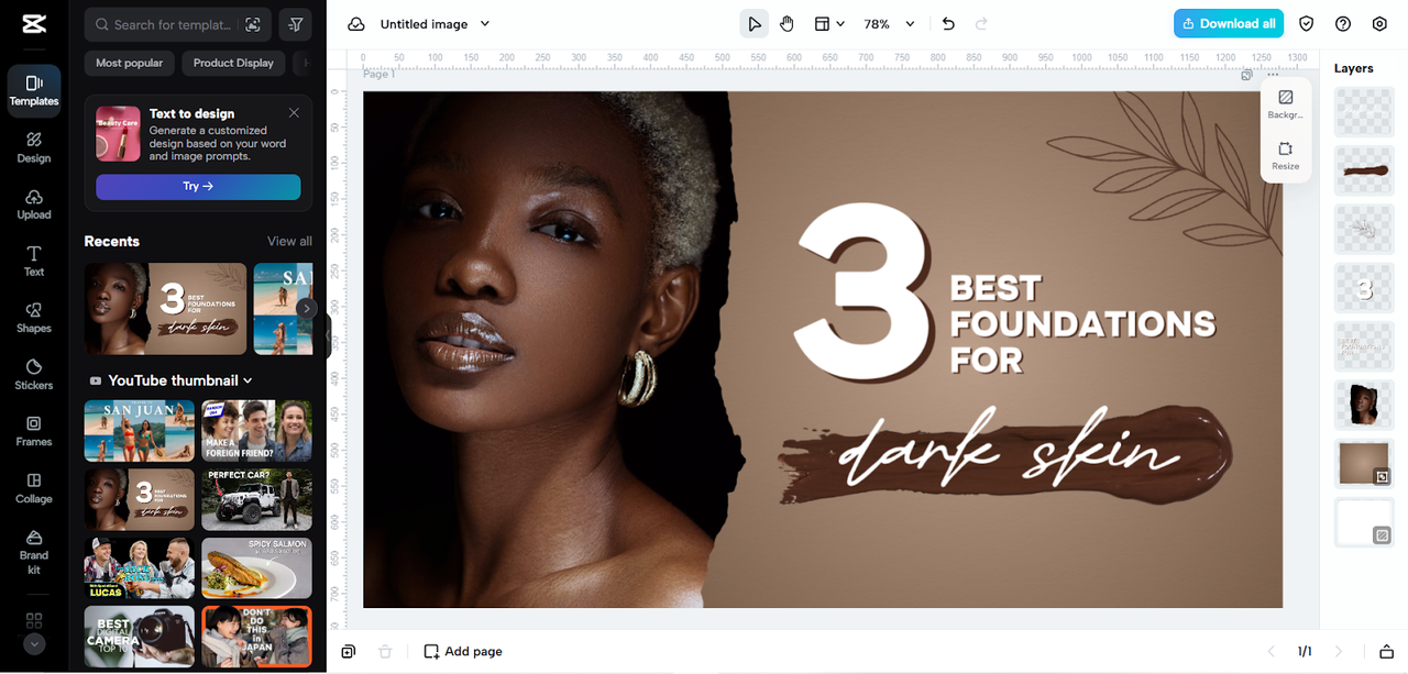 What we don‘t like The templates, while extensive, can feel repetitive across categories. Professionals looking for originality might need to customize heavily. Some advanced adjustments — like selective color grading or masking — are hidden behind the paid plan. The lack of in-depth layer editing can limit flexibility for complex projects or unique designs.
