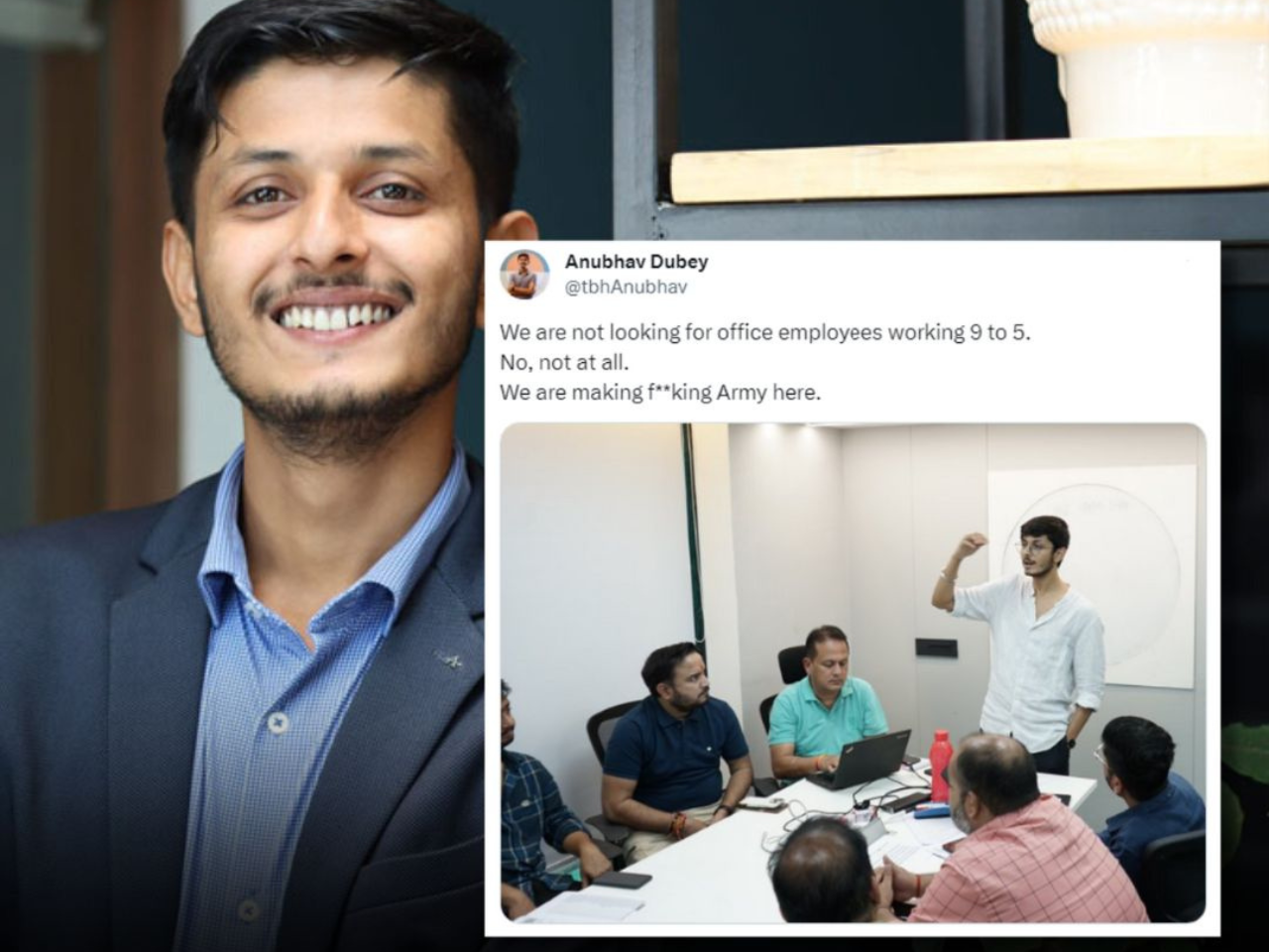 Dubey’s bold statement, “We are not looking for office employees working 9 to 5. No, not at all. We are making f***** Army here,” accompanied by a meeting photo, quickly went viral, but not in the way he had hoped.