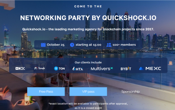 In total, the event will be attended by just over 100 guests from various sectors of the crypto industry. There will also be current QuickShock clients who will be able to tell you personally about their impressions of working with the agency. Would you agree that such an opportunity to meet useful people and gain invaluable knowledge is not very common?