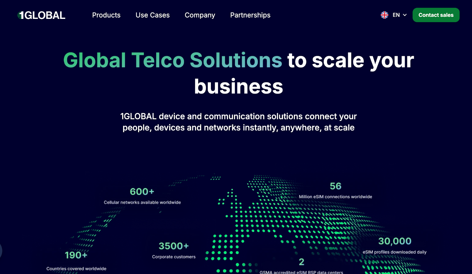 | 1GLOBAL | 2022 | Amsterdam, Netherlands | Global MVNO/telecom operator with regulated eSIM, connectivity stack, white-label APIs for partners and enterprises | Integrated eSIMs in platforms, enterprise mobile/data voice solutions, B2B2C connectivity offerings |