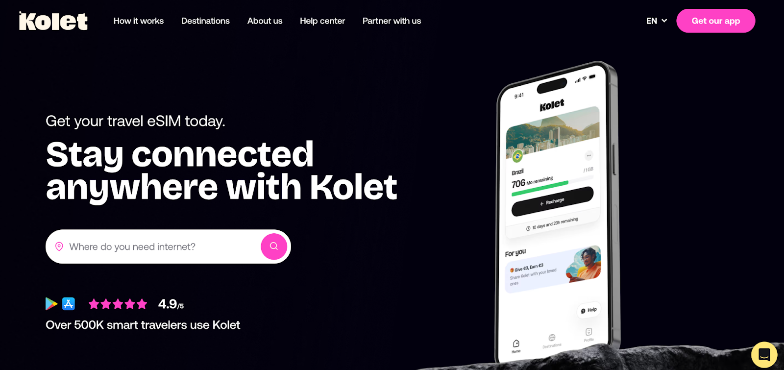 The startup is rethinking the place of eSIM in the customer journey, shifting the point of activation from the telecom operator’s app to the services that the customer already uses. Kolet eliminates unnecessary steps in connecting mobile communications for travelers. The company has established partnerships with travel brands (e.g., KLM) for bundled offers.