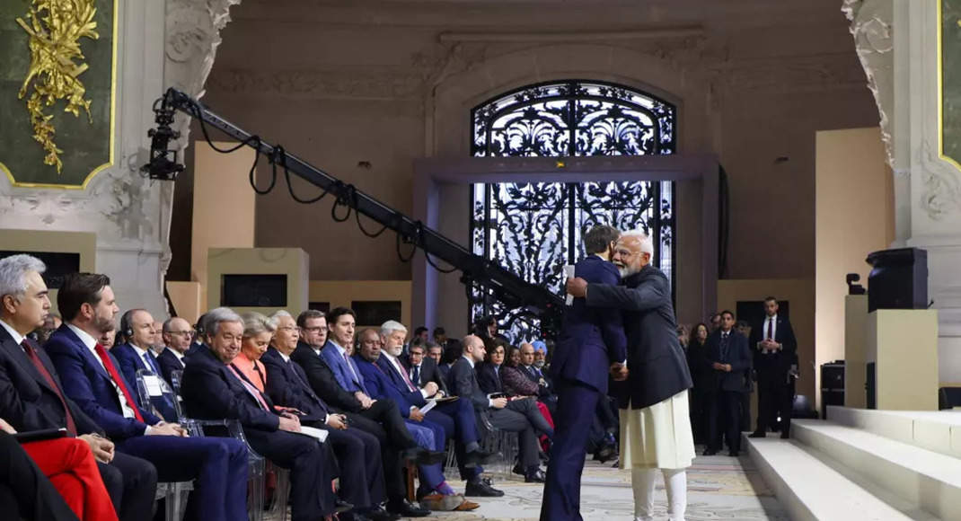 [ad_1] Indian Prime Minister Narendra Modi is welcomed by French President Emmanuel Macron during a plenary session at the Artificial Intelligence (AI) Action Summit at the...