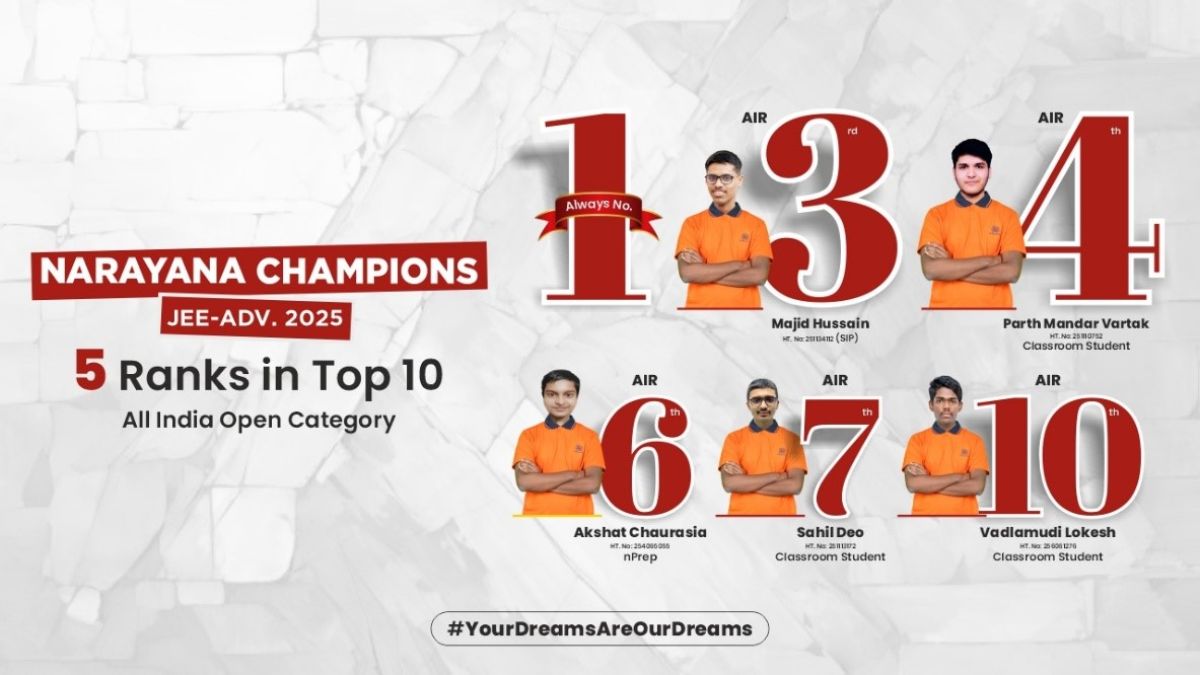[ad_1] New Delhi [India], June 4: Narayana once again demonstrated academic supremacy by clinching 5 of the top 10 ranks in the JEE Advanced 2025 open...