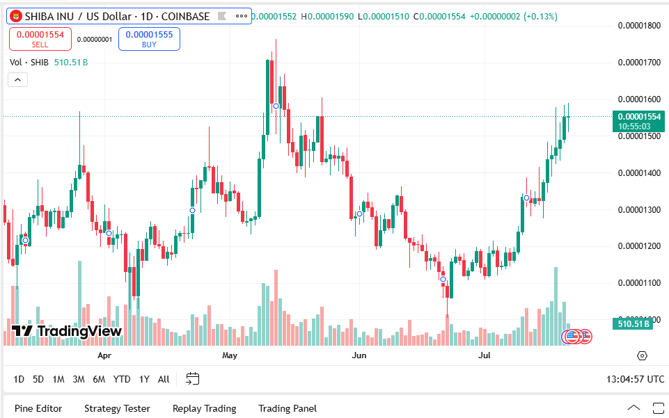 The Shiba Inu Coin created the meme coin phenomenon. As much as it trades for a paltry $0.00001552, it holds a $9.14 billion market cap — a testament to the kind of dominance meme-supported assets still wield. SHIB Price hikes are still driven greatly by whales, community support, and major Shiba Inu news releases.