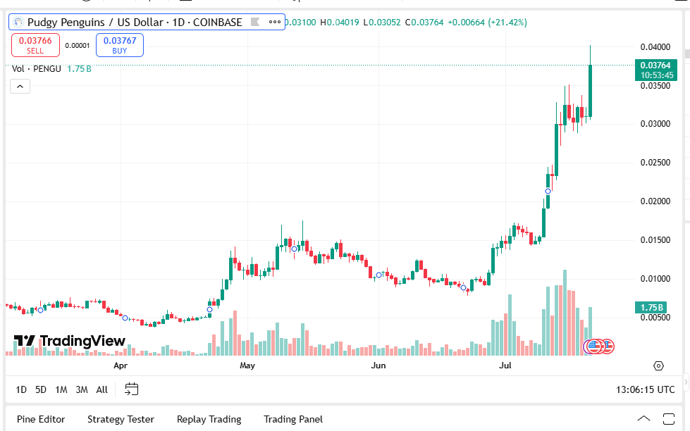 Pudgy Penguins coin (PENGU) might be the new name on every tongue that dominates 2025. Already valued at $0.03826 per token and having a valuation of $2.4 billion, the penguin-powered token is more than a meme.