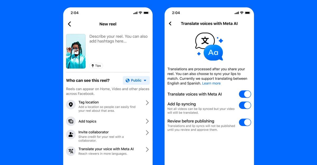 Meta announced today a new AI-based translation tool for creators on Instagram and Facebook. The company uses artificial intelligence to automatically dub videos in other languages, with support for lip-syncing and voice cloning that promises to preserve the creator’s tone and delivery. Here’s how to use it.