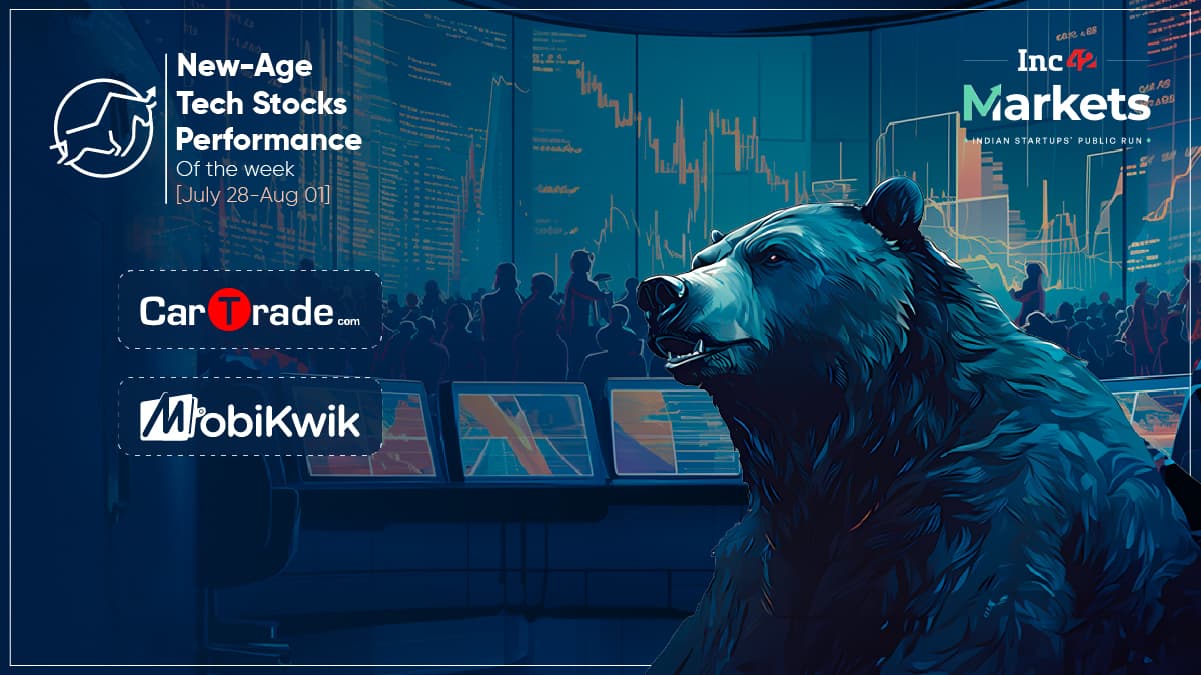 New-age tech stocks under Inc42’s coverage remained under pressure for the second consecutive week in line with the broader market trend, falling in a range of 0.90% to about 9%